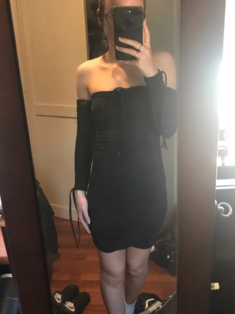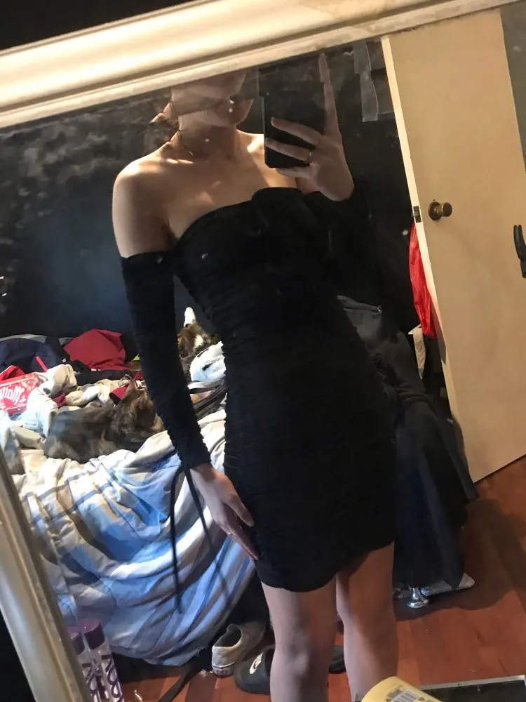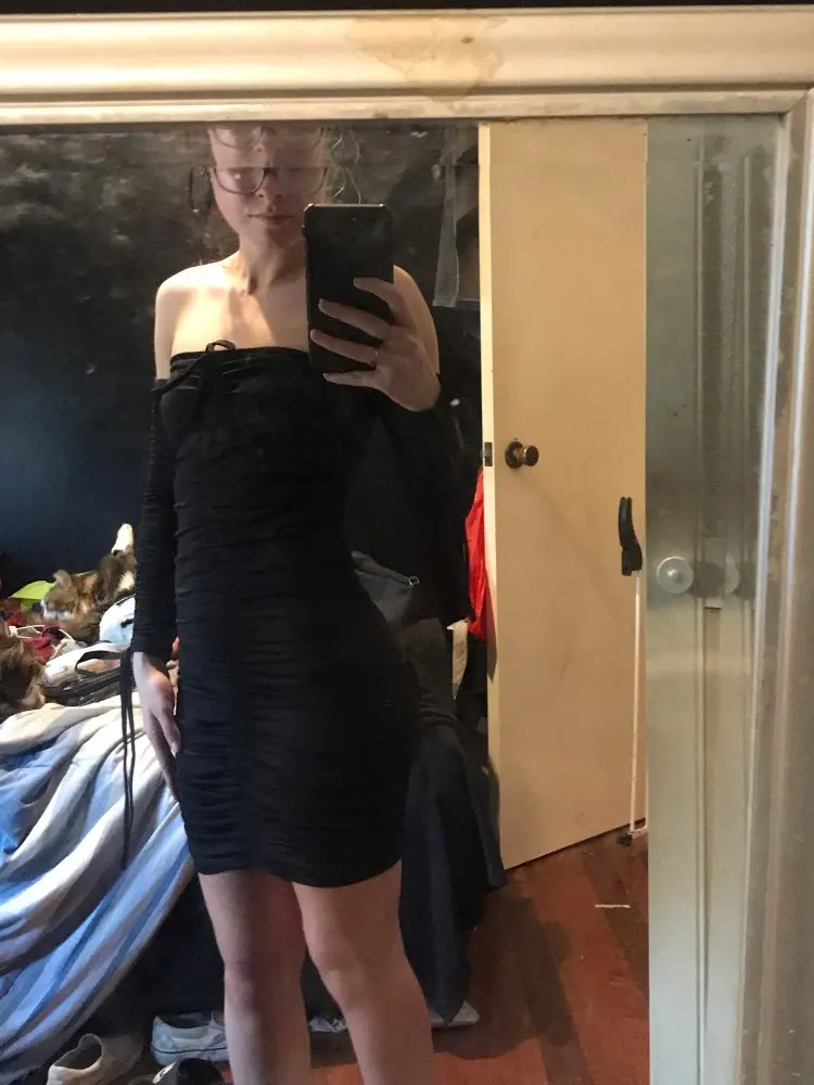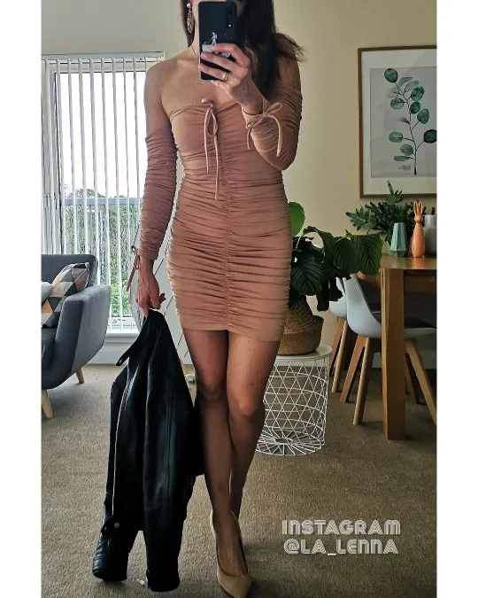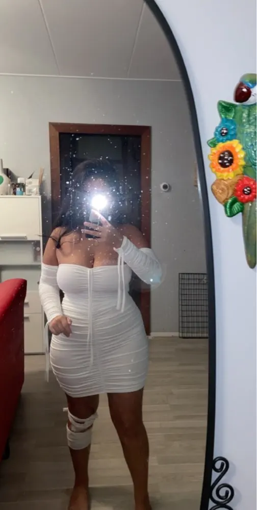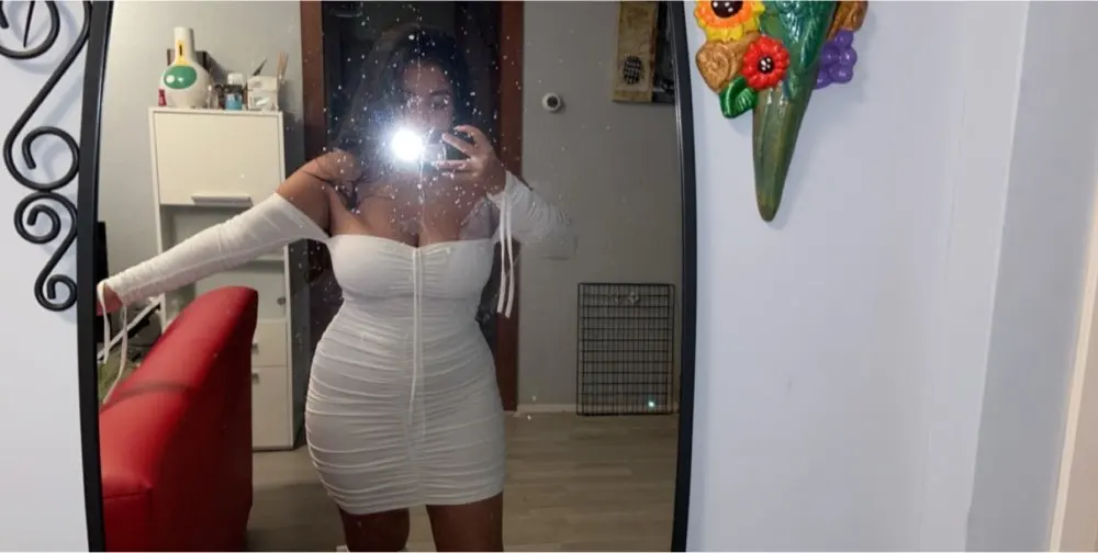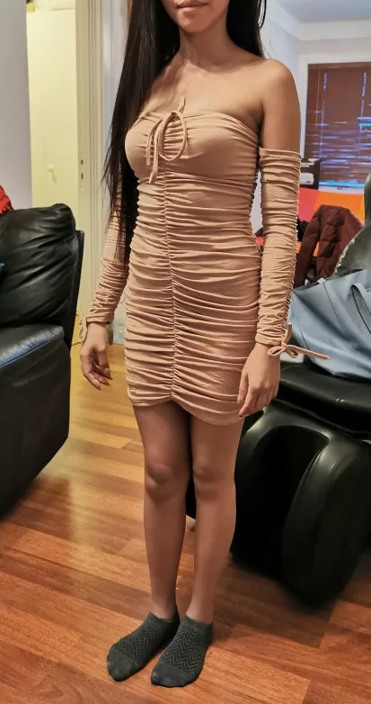 Love this! I have no curves but the way this dress makes my body look! Material is thick so it’s nice and snug. Can’t wait to wear it out