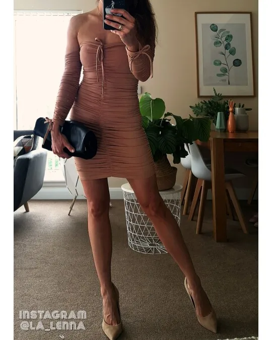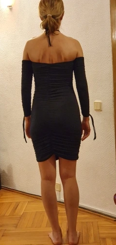 Beautiful thick dress, will fit your figure like a glove! I’m UK size 6 and size M it’s just slightly too big, will be better for the size 8, however it’s very elastic so will fit bigger sizes as well. I’m 162 cm height and dress isn’t too short. Highly recommended!