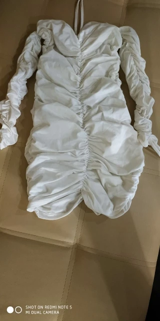 me encanta!!!Muy muy bonito. Igual a la imagen. Soy talla S y cogi la S y muy bien, se ajusta perfecto. Hay algo que me gusta mucho: se puede llevar largo o corto. Ver fotos. Yo mido 1’60 y 49kg. Pero este vestido le valdria a una chica de 1’70 o mas porque se estira. Por dentro parece como de otoño o asi, porque es tela gordita, pero el blanco en verano sienta tan bien… envio rapido!! Lo recomiendo!!!