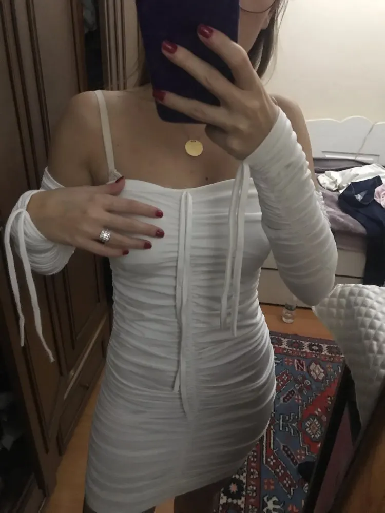 Платье шикарное ! На параметры 86-60-89 размер s. Можно носить как длинное , так и короткое . Но имейте в виду, на попе слегла просвечиваются трусики . Нужны либо белые, либо бежевые