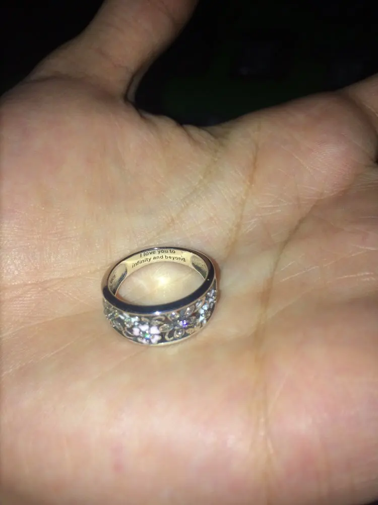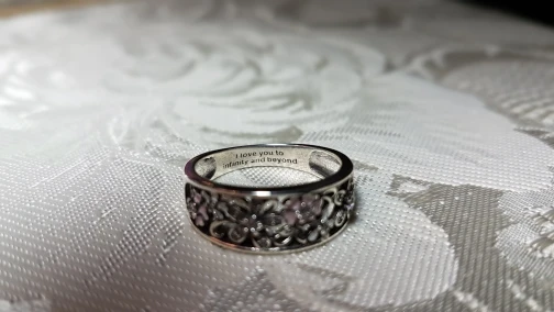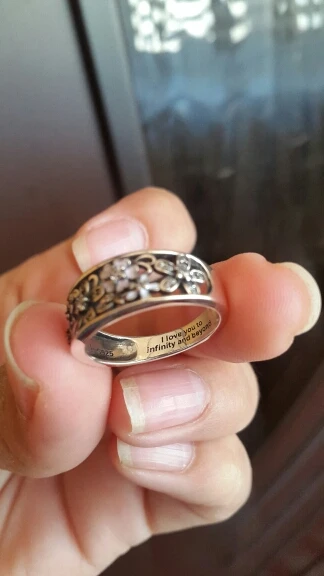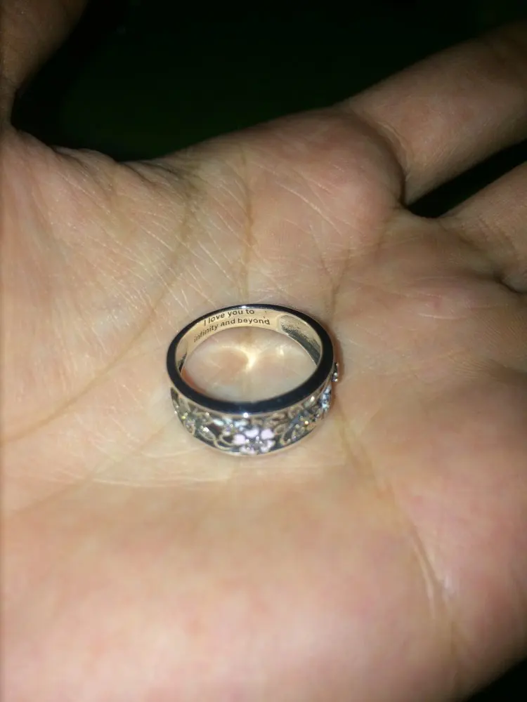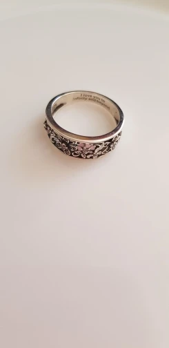 A very beautiful ring indeed and its worth every penny. The engraved words do make it extra special.
