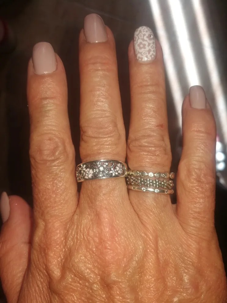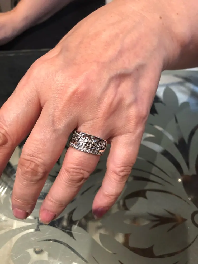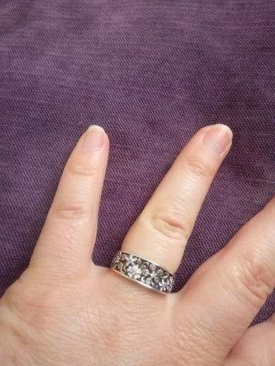 Nice ring, perfect size 17,5 7. But it seems to me this model for women over 45