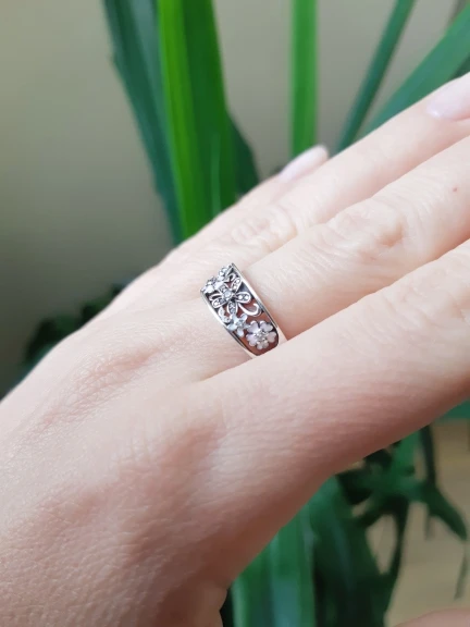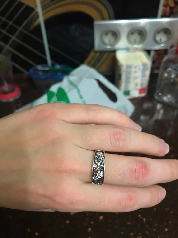 Beautiful ring, high quality made. Size 7 16.5-17. Flowers little sunk deep into the ring and do not look exactly as the photo from the store. But it is not critical. Parcel arrived very quickly, within 10 days. Great seller, this is my second order from him. Definitely recommend!