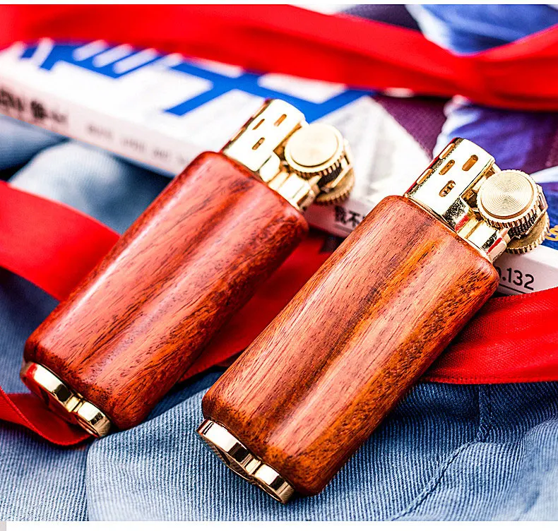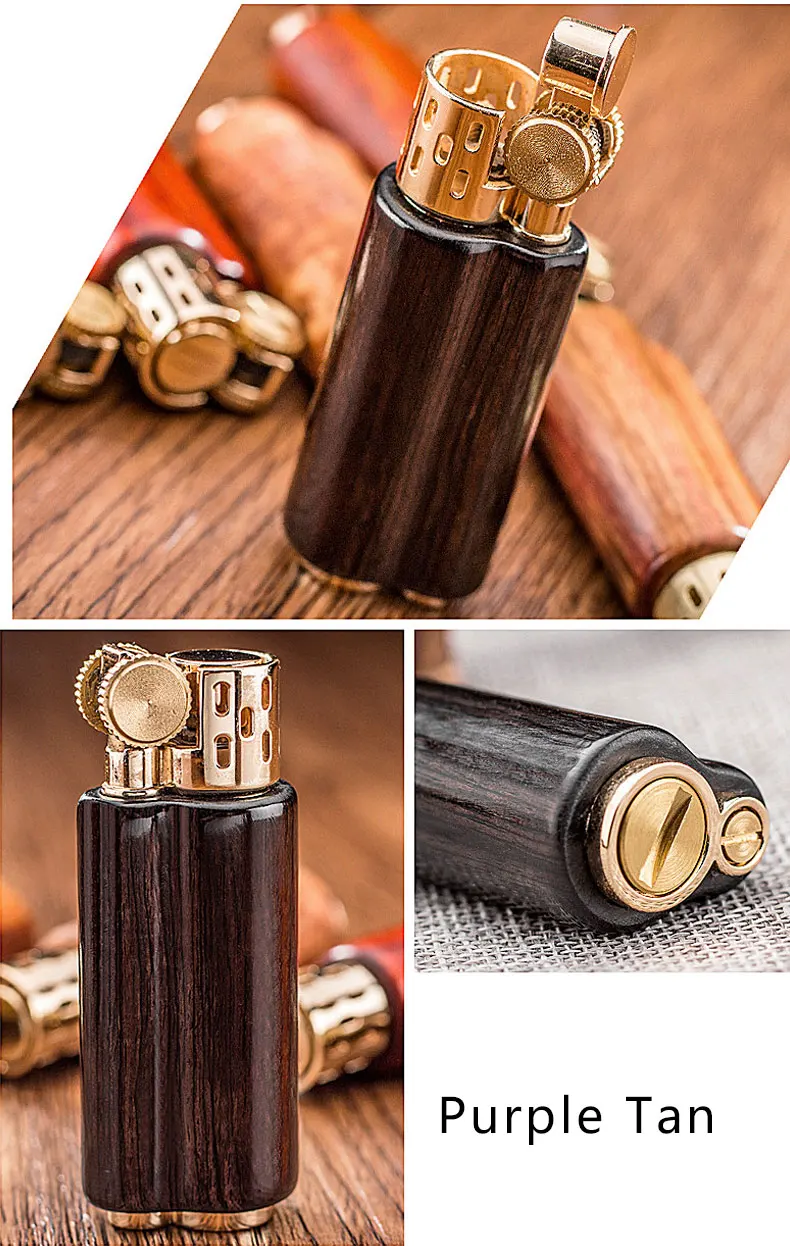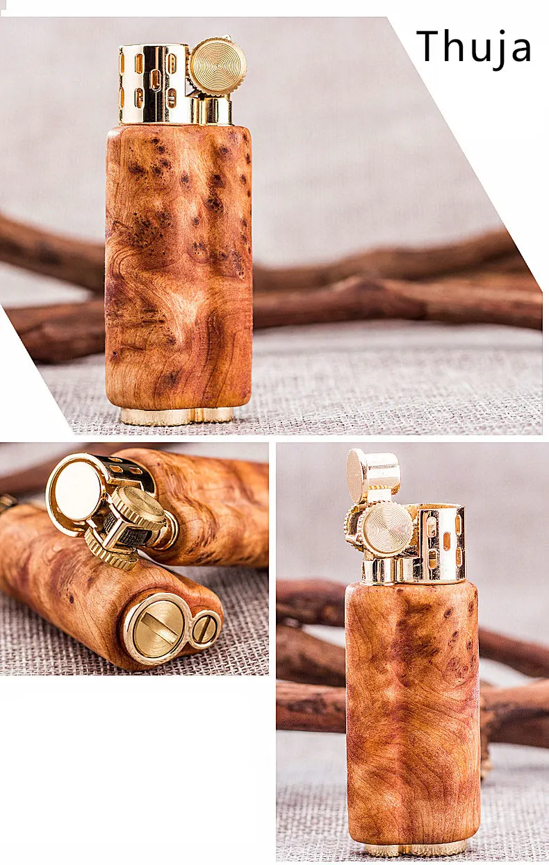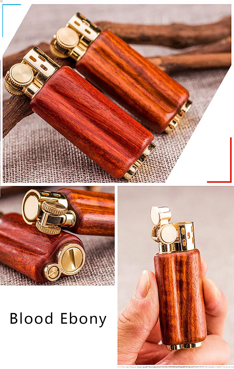26*70mm Sandal Wood Gasoline Lighter Windproof Vintage Gas Lighter Gasoline Petrol Lighters Cool Gadgets Creative Gifts